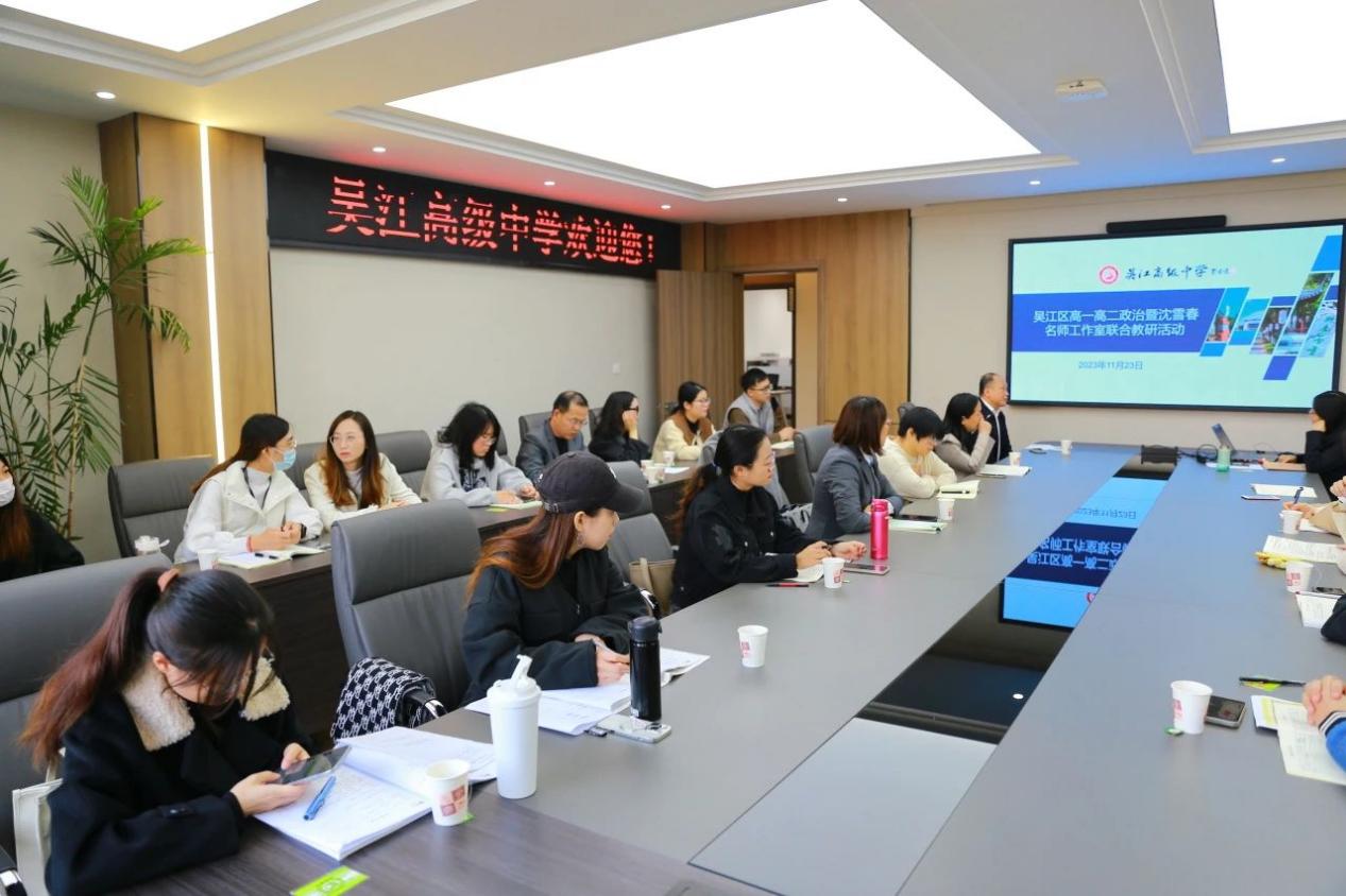 为促进教师的专业发展,推进政治核心素养在课堂落地,搭建深化教育理念、提升教学能力、交流教学经验的平台,11月23日,吴江区高一高二政治暨沈雪春名师工作室联合教研活动在我校举行。参加活动的有吴江区教育局教研室沈青青老师、高一高二政治备课组长、沈雪春名师工作室成员。