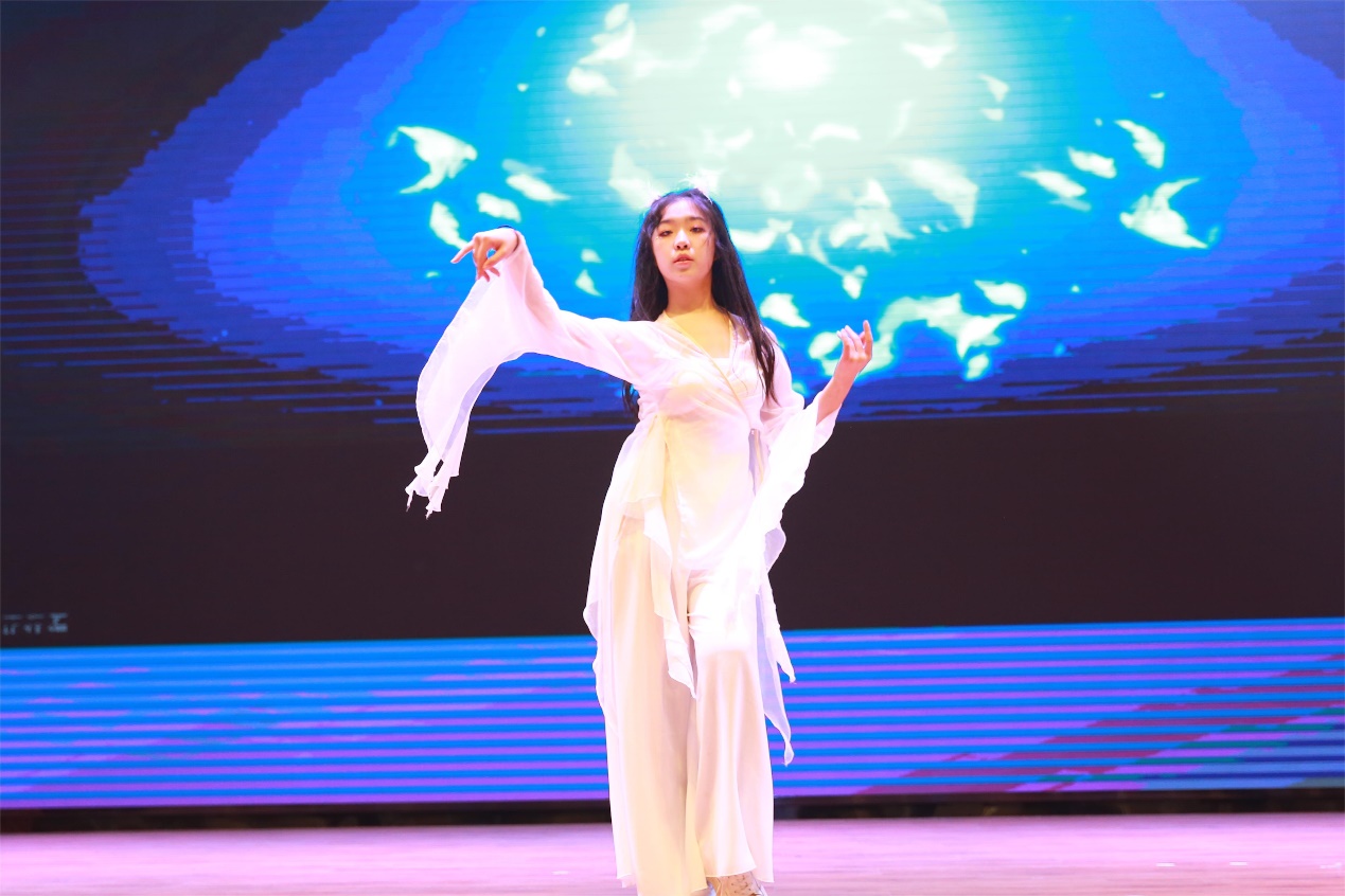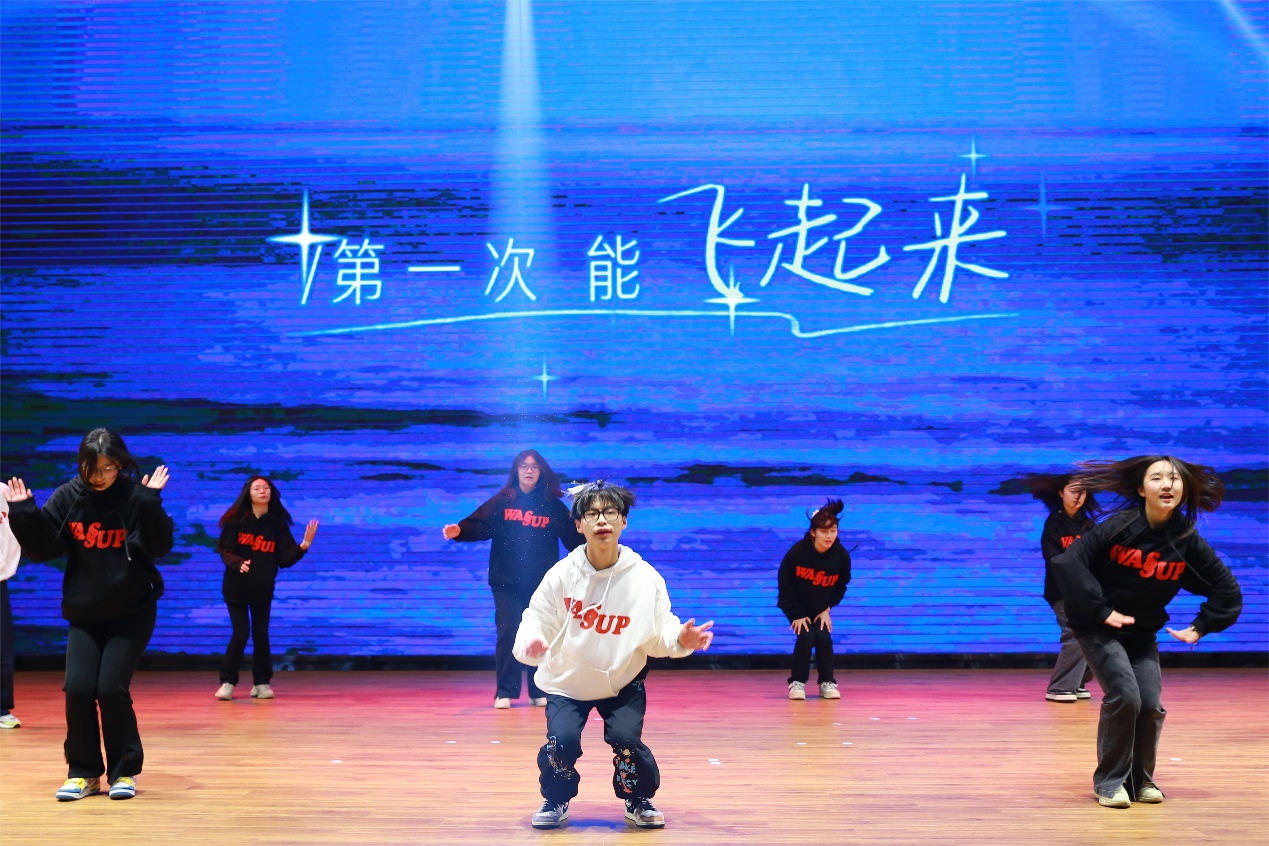 伴随着《想你时风起》的婉转歌声,同学们青春启航。在黑白琴键之间,弹奏属于自己的青春旋律。舒缓的琴音逐渐激昂,晚会的气氛越来越热烈。欢快的鼓点,大开大合的舞蹈《NEW DANCE》,全场气氛在这一刻被点燃。