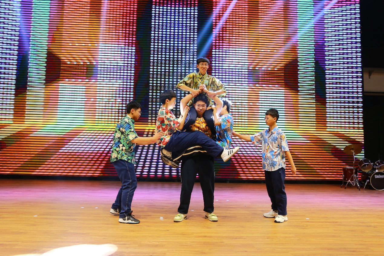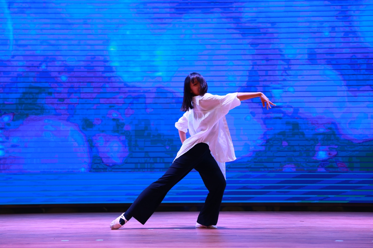 施纯轩老师和高二(4)班的共舞《第一天》更是好评如潮,燃爆现场。 跳跃的音符演奏着青春的活力,动人的舞步展现着青春的风影。