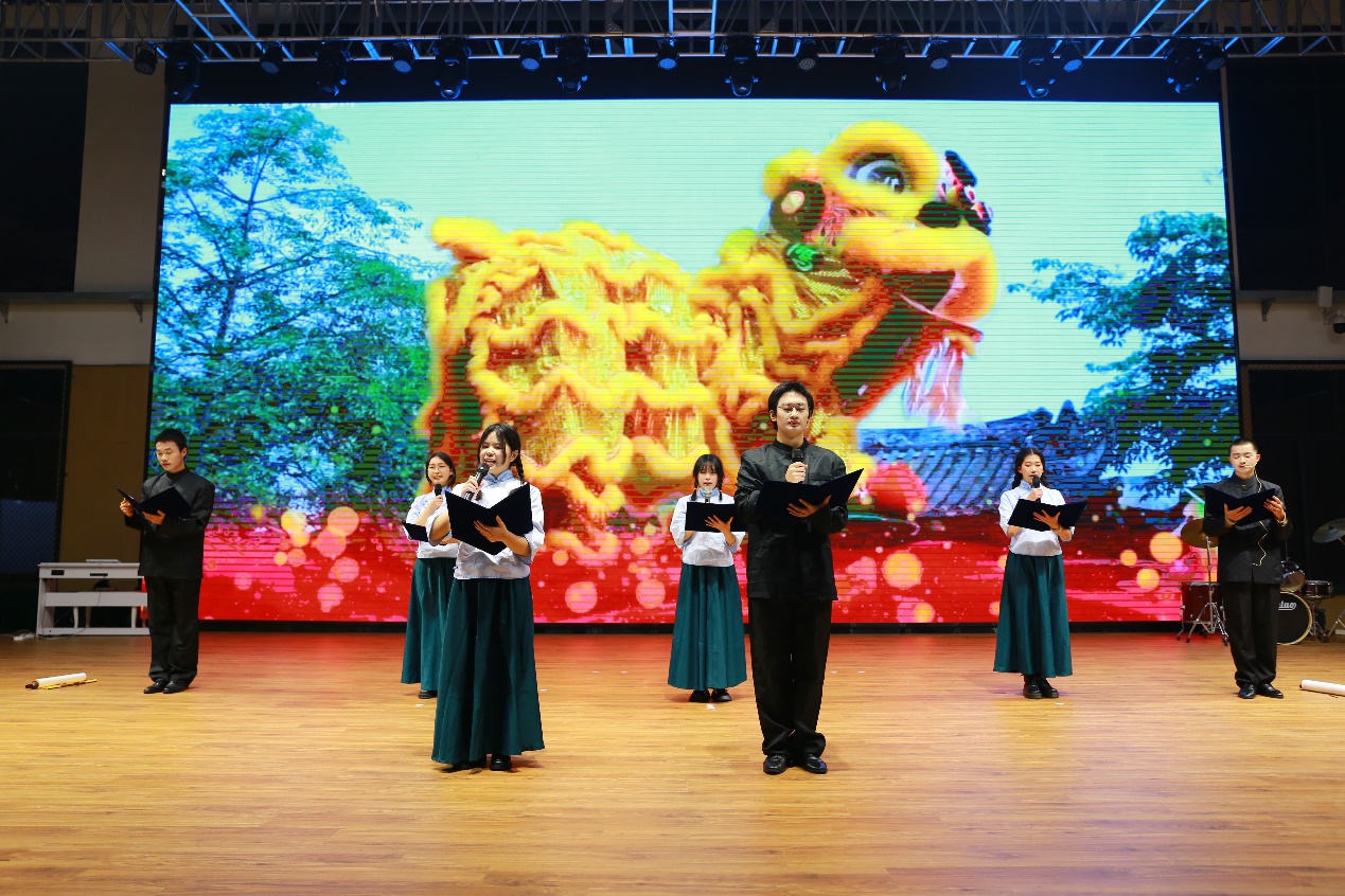 相声《元旦拜年》“笑果”不凡,诙谐幽默的为我们刻画“年”的味道。两位同学共同演绎着传统文化的魅力,逗趣欢乐。青年教师们幽默风趣地表演了三句半节目。他们以这种形式新颖,喜闻乐见的创作表演绘声绘色地讲述了征鸿校园的日常生活、办学理念、教学成果和治学特色。