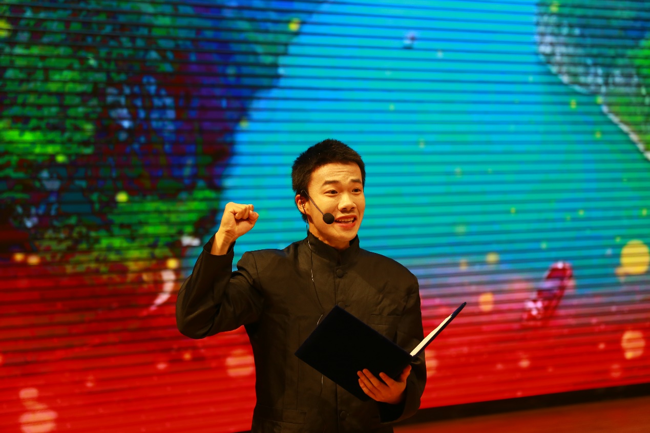 青春的模样,如同明亮的星星,点亮天空,也点亮未来。 “今天一个腾飞的中国,更让人读得生动、读得自豪。这就是在世界的东方喷薄而出的希望的中国!” “征鸿之声”演朗社成员澎湃激昂地朗诵。这就是青春中国!吴高有青春少年!