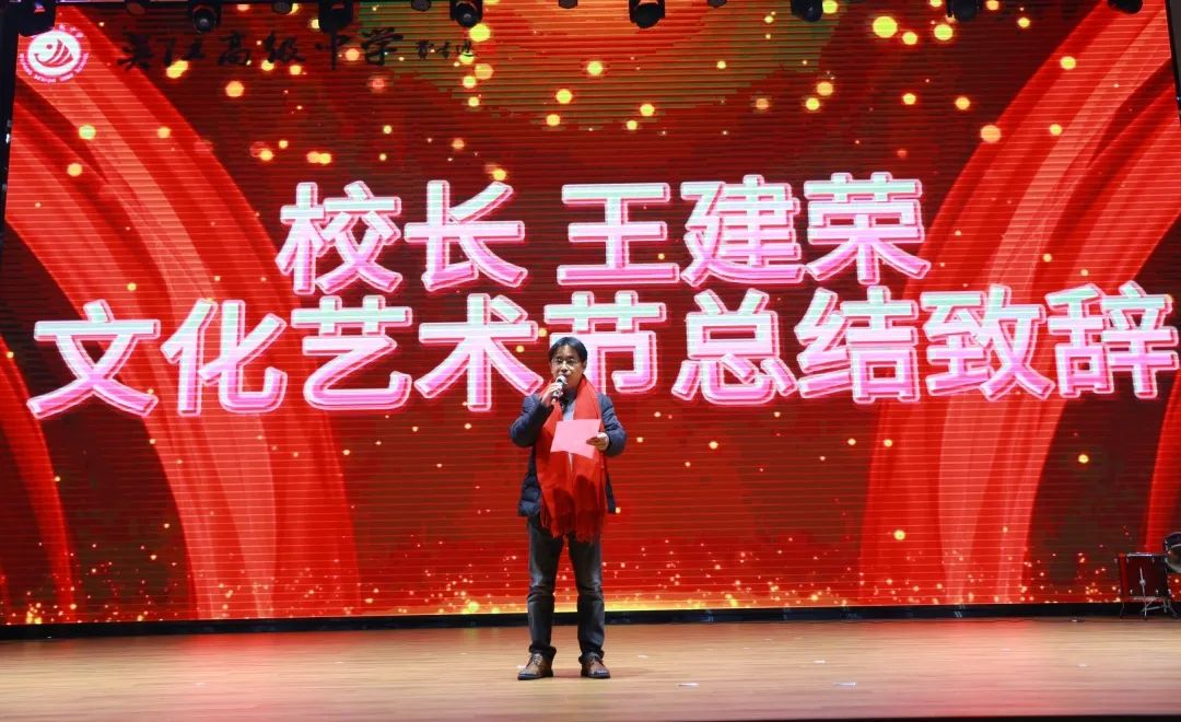 王建荣校长献上新春祝福:每月有主题 每月有活动。吴高的校园文化艺术活动精彩纷呈。一年一度“征鸿之春”元旦文艺汇演是我校校园文化艺术活动的压轴大戏、浓缩总结;是校园师生青春风采和精神风貌的闪亮绽放。龙腾马跃展宏图 欢歌曼舞庆新年。今夜 我们相聚在这里,共同分享2023年的桃李华秾、累累硕果、丰收喜悦;今夜 ,我们相聚在这里;共同庆祝2024年的新春新景、新年新貌、新篇新章。今夜 我们相聚在这里共同预约2024年的龙行虎步、步步鸿运、事事美满;今岁已登百步楼 明年更展千重锦。祝愿我们的吴高征鸿健飞,更上层楼!