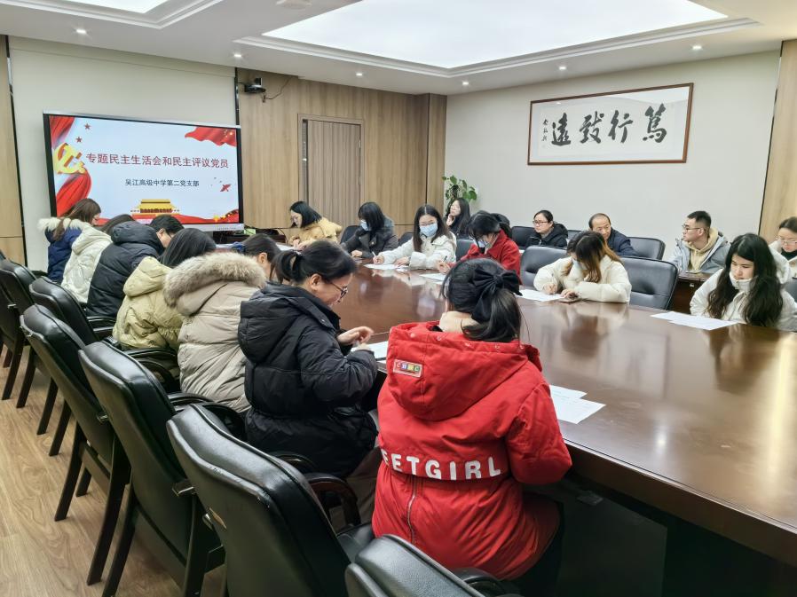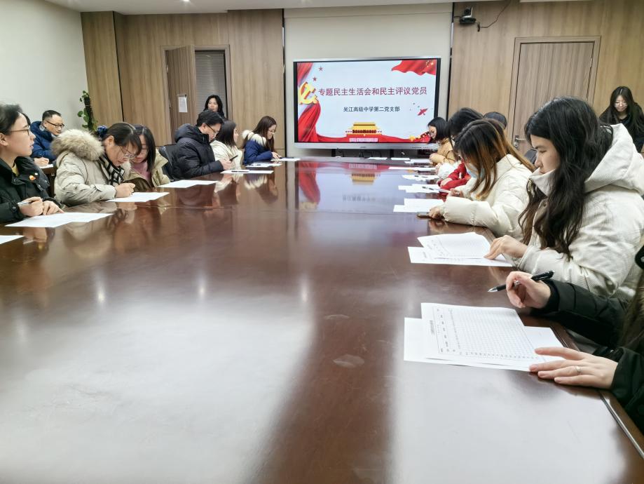 1月22日,吴江高级中学第二支部全体党员同志,集中行政楼会议室1,围绕“认真召开主题教育专题组织生活会和开展民主评议党员”开展主题党日活动,主题为“总结反思开新局 蓄力奋进新征程”。