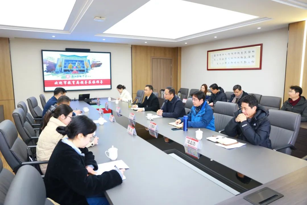 为进一步做好春季开学相关工作,全面了解和掌握新学期开学情况,确保新学期各项工作安全、稳定、有序、高效地开展,2月27日上午,苏州市教育局纪工委副书记浦建平 、苏州市人民政府教育督导室督政处处长、市学校管理中心主任姚敬华、苏州市教育局基教处副处长朱虹一行莅临我校,对新学期开学工作进行视察指导。吴江区教育局领导吴伟钢、沈志伟、沈志浩、潘玲琴以及学校领导班子成员陪同走访。