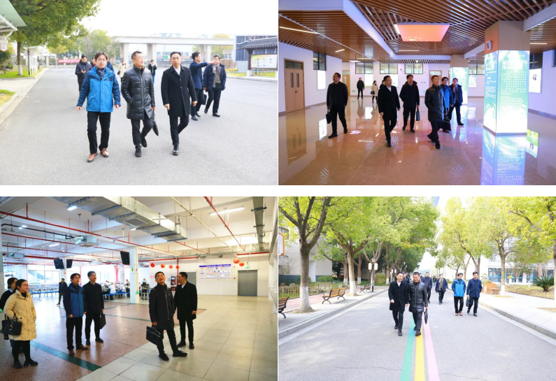 走访组一行在党委书记金永建、校长王建荣的陪同下,实地查看了学校食堂、教学楼、运动场地及学校课程基地,并详细了解学校新学期的开学工作、学生心理健康、教育教学管理、校园安全管理、师资队伍建设等开展情况。