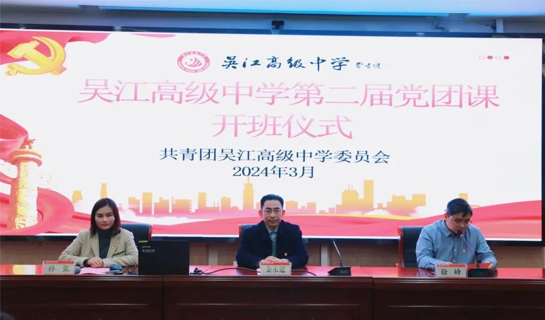吴江高级中学于3月4日举行共青团吴江高级中学委员会第二届党团课开班典礼,旨在引领青年将追求政治进步的目标落实在行动中。党团课班主任、团委书记孙张主持本次活动。徐峰副校长宣读了第一届党团课结业名单。