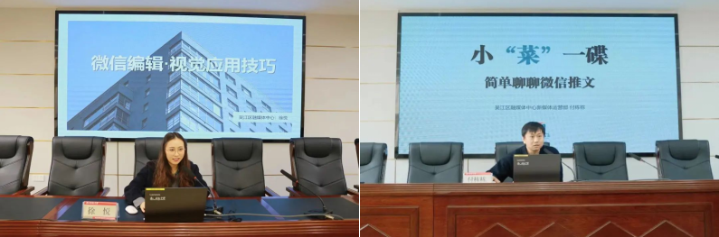 2023年3月15日上午8:30分,在2024年第一场征鸿融媒体中心组会议现场,吴江区融媒体中心新媒体运营部副主任付栋栋、新媒体运营部微信责任编辑徐悦为中心组的小伙伴们带来了两场新媒体实操业务讲座。“出圈的图片=成功一半”、“图片选择与加工很重要”、“间距、配色、图片”、“让视觉有空间感”……徐悦老师以《微信编辑:视觉应用技巧》为题,分享了满满的“美丽”技能。“如果融媒体人是一位厨师,你该如何做菜,如何吸引顾客呢?”付栋栋老师以《小“菜”一碟》为题,从微信定位、选题方向、内容创作和标题创作四个方面,分享了吴江区融媒体中心在微信公众号创作中的一些经验和感悟,同样干货满满。校长王建荣表示,讲座为征鸿媒体人打开了一扇窗,指明了一条路,推开了一扇门。希望征鸿融融们以新的视角、新的姿态书写新华章!