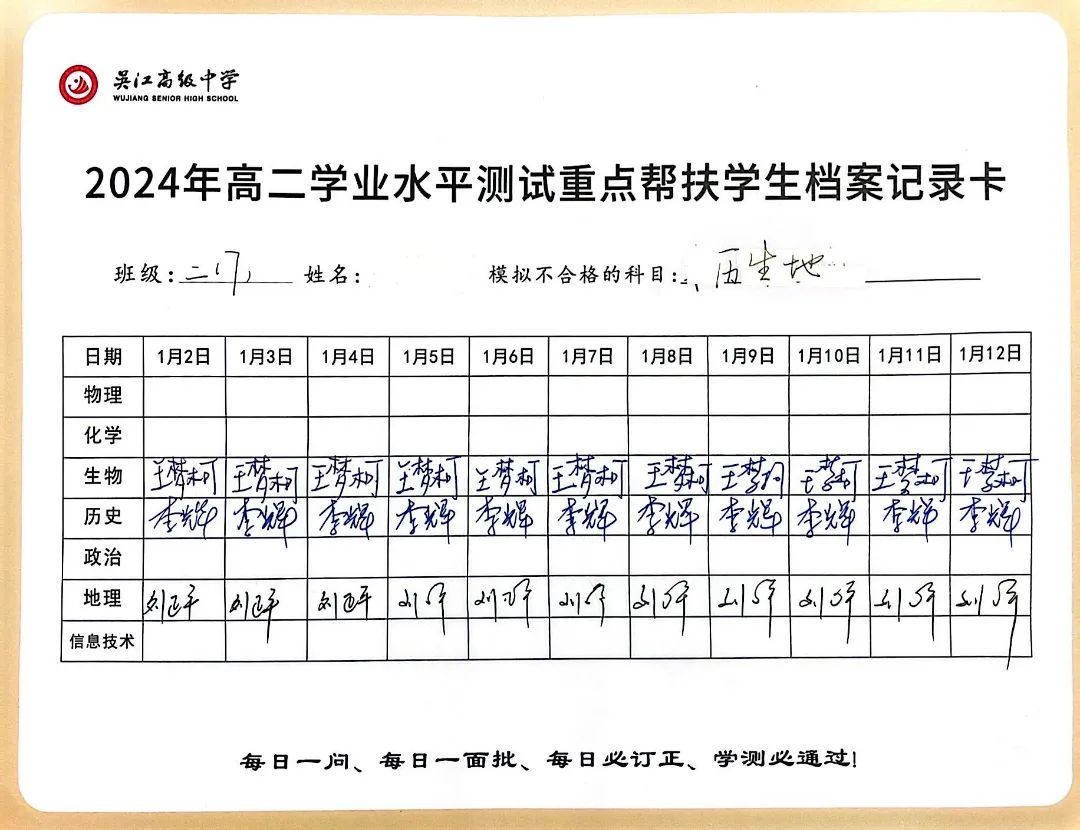 学测备考路上,每一位老师都是我们成长路上的引路人。他们默默耕耘,勤勉付出,一份份重点帮扶学生档案记录卡,是他们坚定付出的最好写照。他们的言传身教,让我们受益终身。