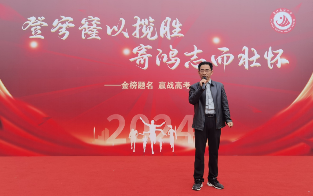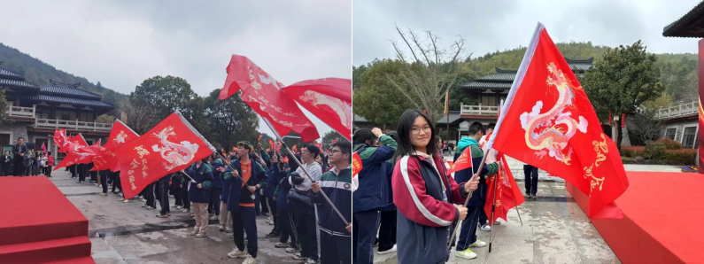 穹窿揽胜,登高祈福。德育处主任、高三年级部部长曹惠平主持本次活动,党委、校长室成员援甲授旗,征鸿学子意气风发。