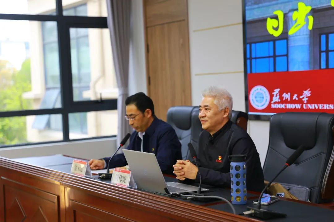 为持续深入学习贯彻党的二十大精神,全面深刻领会全国“两会”精神,强化政治培训,坚持用党的创新理论武装头脑,2024年4月3日下午,吴江高级中学党委邀请苏州大学保卫处副处级调研员、政治保卫科科长周伟虎来校开设全国“两会”精神解读主题讲座,党委书记金永建主持会议。