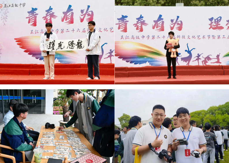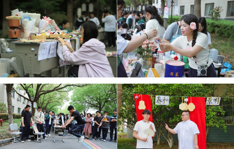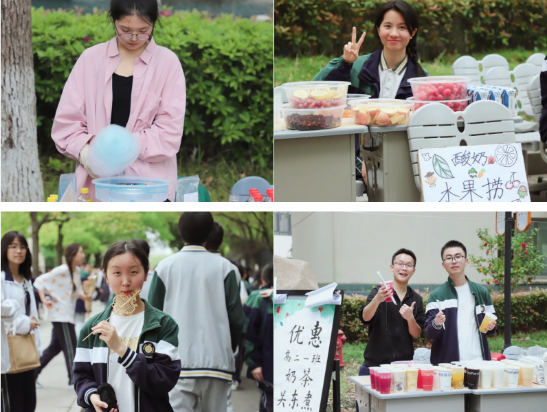 草坪南侧林荫道上,“跳蚤市场”一片红火。图书、绿植、文创用品等摆满了摊位,各班级的摊主热情地招呼着客人,耐心地介绍自己产品的特点。丰富的产品引得吴高学子驻足流连,还有老师带着自己的家属来参与艺术节,有的老师出资购买学生摊位上的物品。其乐融融的交谈声中,学生完成了一单又一单生意。独到的经营眼光,高超的推销艺术,这些是学生在书本之外学到的。虽然身体有些疲惫,但内心却是无比丰盈的。