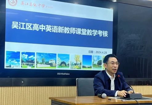 为助推吴江区2023年新入职教师提升课堂教学水平和业务能力,拓展综合素质,4月28日,吴江高级中学承办吴江区高中英语新教师课堂教学考核和评估。本次活动由江苏省特级教师、正高级教师、苏州市高中英语名师发展共同体领衔人、吴江区高中英语名师工作室领衔人、吴江高级中学党委书记金永建主持,活动由课堂考核、现场说课和评课指导三个部分组成。