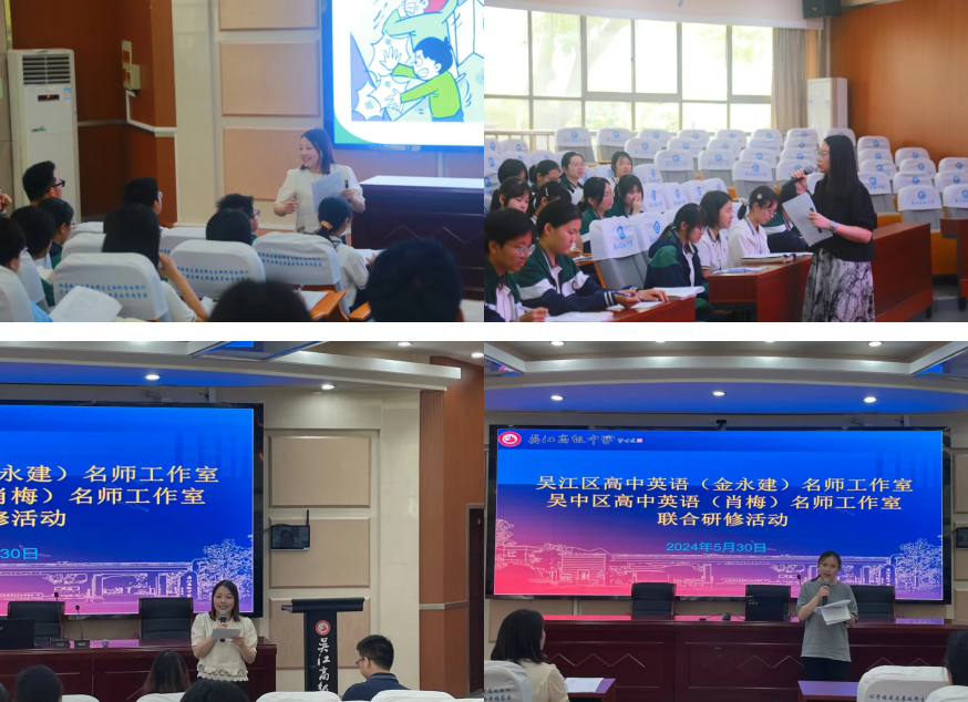 为推进名师队伍建设,发挥名师工作室的辐射效应,引领和助推青年骨干教师自我成长,近日,吴江区高中英语名师(金永建)工作室和吴中区高中英语名师(肖梅)工作室全体成员以及吴江区高中英语新教师汇聚吴江高级中学,举办高中英语名师工作室联合研修活动。