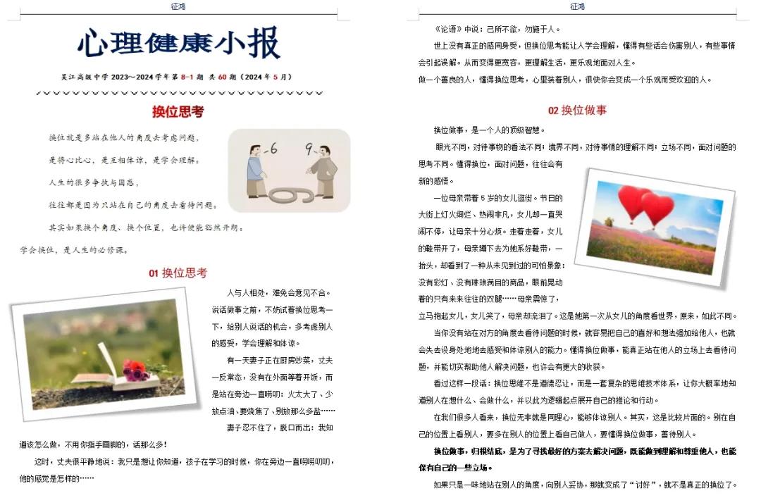 在这充满爱意、溢满能量的五月,我校开展“家教润心,成长同行”心理健康润心活动,以营造积极向上、健康和谐的校园氛围,提升师生、家长心理健康知识水平和素养,将爱与希望根植于每个人的心间。
