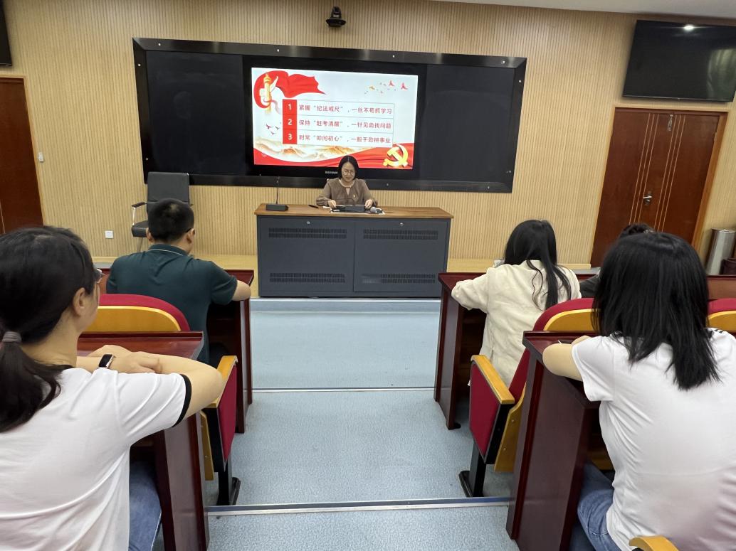 支部书记费琪同志联系岗位职责和工作实际,紧扣《中国共产党纪律处分条例》,开设专题党课,题为《自我净化、自我革新、自我提高》。纪律是党的生命线,修订后的《条例》政治性更强,内容更科学,逻辑更严谨,指导性和可操作性更强。费琪同志指出,党员同志要紧握“纪法戒尺”一丝不苟抓学习;要保持“赶考清醒”,一针见血找问题;要时常“叩问初心”,一股干劲拼事业。要牢记百姓不忘本,牢记成长不忘恩,牢记公权不忘源;要树牢“从严治党永远在路上”理念,保持求真务实的作风,保持廉洁自律的审慎,保持严守纪律的敬畏。面对新时代新征程、新形势新任务,要真抓实干,防微杜渐,持之以恒,将自我革命的力量转化为推动工作的实际成效;要学纪、明纪、守纪,不断提高党性修养和拒腐化防变能力。