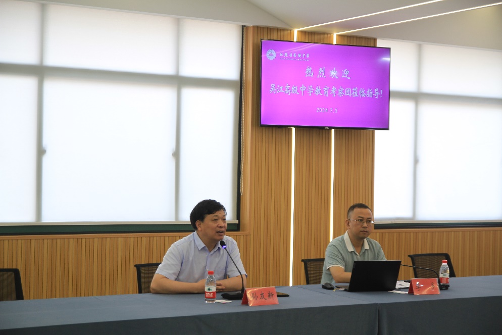 孙友新书记重点介绍了姜堰中学近年推进的五项行动:以办学理念为内核的文化建设行动、以“慕德行道”四有好教师团队建设为主题的教师发展行动、以“三新”研究为抓手的质量提升行动、以项目建设为载体的内涵式发展行动和以一流学校为对标的环境提档升级改造行动。
