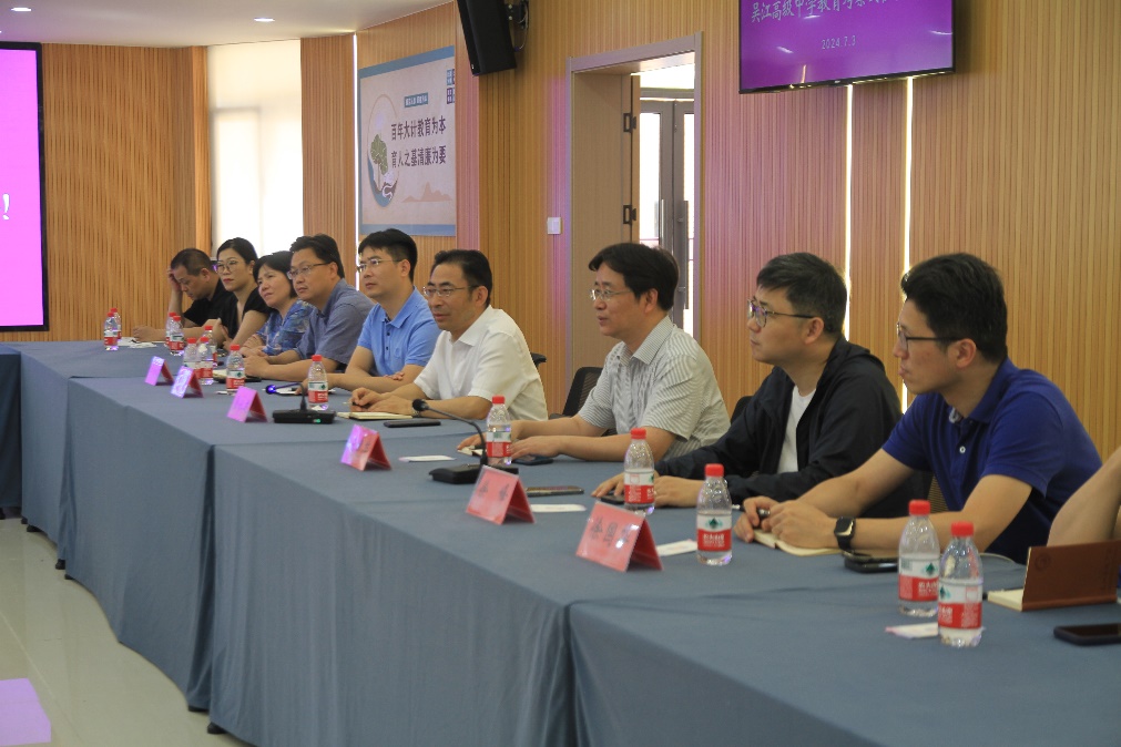 7月3日,孙友新书记、李多副校长陪同我校研修团参观了土壤实践活动课程基地、AMUSE高中英语课程基地、学生社团活动室、学生发展中心和五四堂等场馆。参观校园后,孙友新书记、李多副校长在教师研修中心一楼南会议室与我校同仁们交流了学校的办学情况。