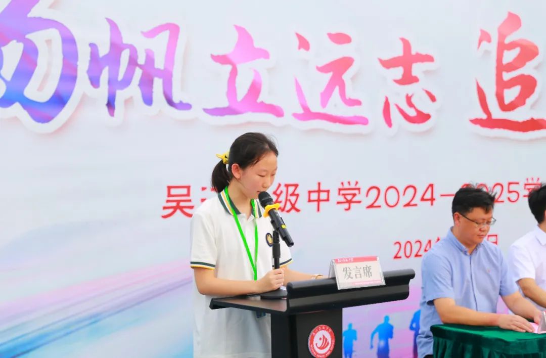 拥无边热爱,赴广阔学海。高一(1)班吴悦瑶作为新生代表发言,她以《面朝希望,扬帆起航》为题讲述了作为新征鸿人的信心与期待,彰显了征鸿学子不怕苦,能吃苦,不畏难,战艰难,不退缩,敢奋斗的勇毅与力量。