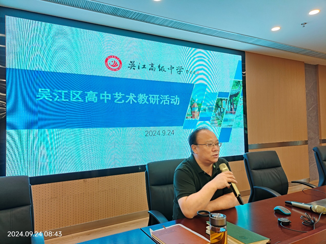 2024年9月24日,吴江区高中艺术教研活动在吴江高级中学举行,本次活动由吴江区教研室艺术教研员王展鹏老师主持,全区的高中美术和音乐老师参加了本次活动。