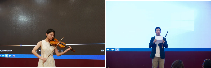才艺展示时,他们高山流水品诗篇,他们妙语连珠话经典。朗诵之声洋洋盈耳,诗文之音娓娓动听,喜剧之秀绘声绘色,征鸿学子用自己的才艺为祖国“花式”献礼。舞一段绝美之姿,跃动向上的青春力量,一收一放尽显活力与动感,一弹一拉皆是气韵与传承。