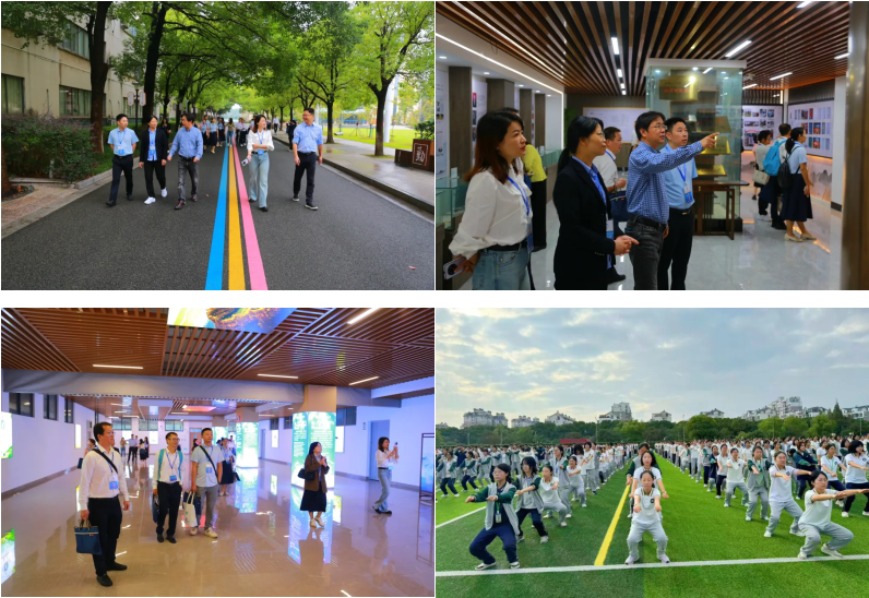 下午,在德育分管校长徐国华的带领下,广东教师们来到操场观看高一高二跳操。整齐的队伍、洪亮的口号、灵动的身姿、活泼的氛围,调动了在场所有人的情绪,来宾们笑着竖起了大拇指。