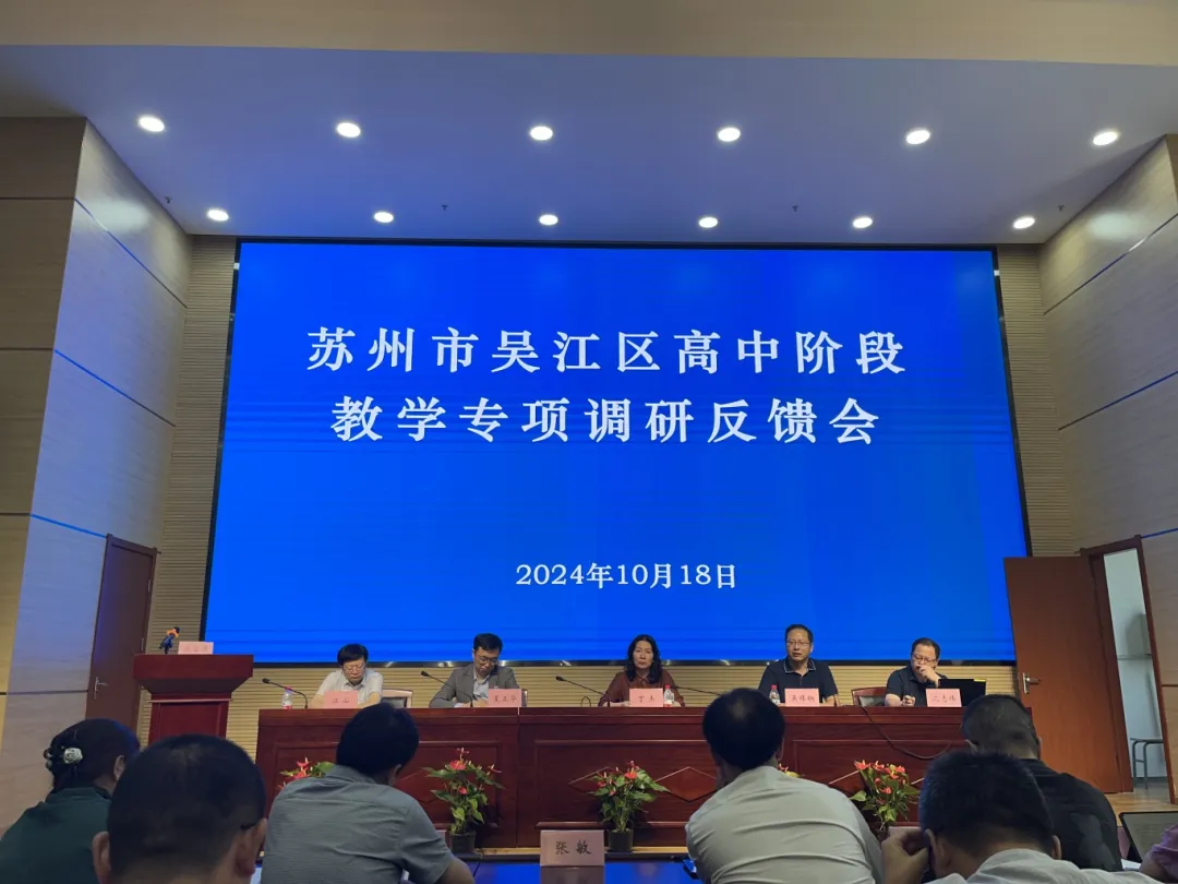10月18日,苏州市吴江区高中阶段教育专项调研反馈会在吴江区教师发展中心召开。校长王建荣、高三分管校长王孙斌、教务处主任吴蕾参加会议。