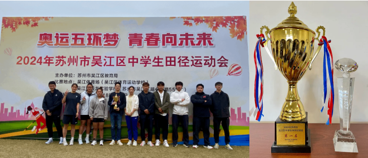 2024年10月18日-20日举行的吴江区中学生田径运动会中,我校健儿们顽强拼搏、奋勇争先,取得团体总分第一名的好成绩并打破了四项赛会纪录。