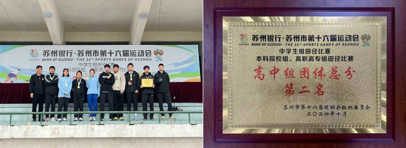 2024年10月25-26日,苏州市第十六届运动会中学生组田径比赛中,我校代表队再一次展示了征鸿学子奋发进取的精神风貌和良好的运动竞技水平,获得高中组团体总分第二名的优异成绩。