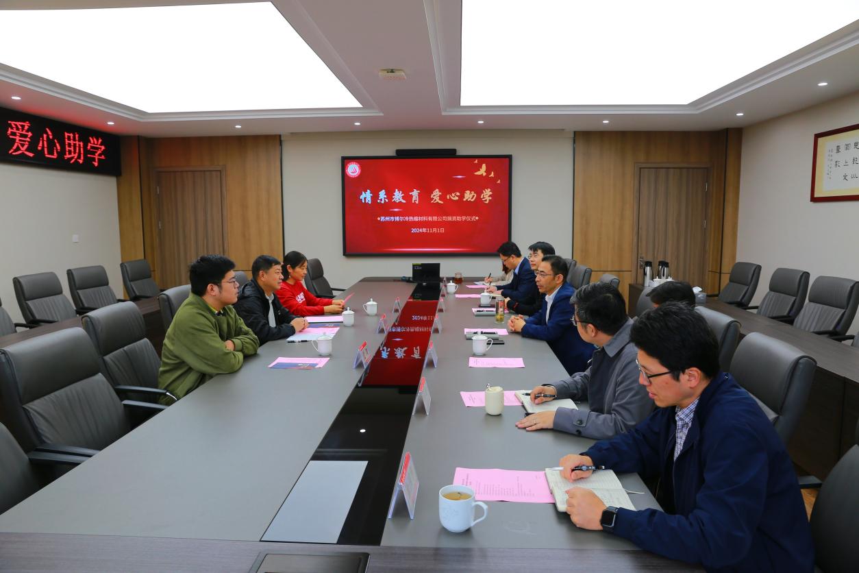清水润物无声,爱心助学显情。2024年11月1日,苏州市博尔冷热缩材料有限公司沈雪良先生带着爱心、带着希望,带着祝福莅临吴江高级中学开展捐资助学活动。出席本次活动的有吴江高级中学党委、校长室全体成员部分中层行政。