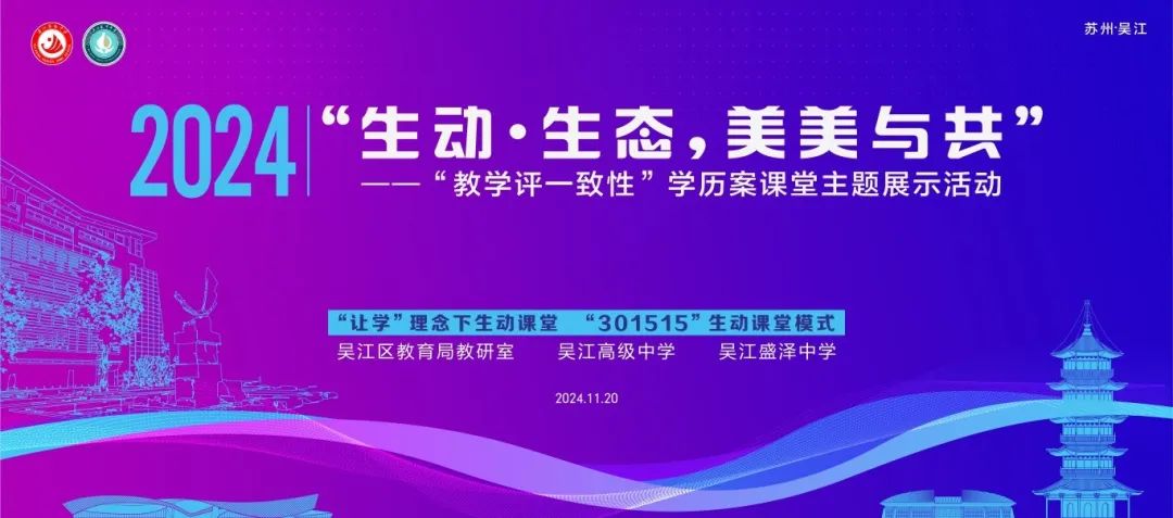 2024年11月20日,为深化课堂教学改革,推进“新课程、新教材”的实施,促进育人方式的变革,转变学生学习方式,优化教师课堂教学行为,加强兄弟学校间的交流合作,吴江高级中学和吴江盛泽中学以 “生动·生态,美美与共”为主题的教学展示活动,在吴江高级中学如期举行。本次活动旨在通过“以学生为主体、以学习为主线、以学力为旨归”共创师生大美课堂。