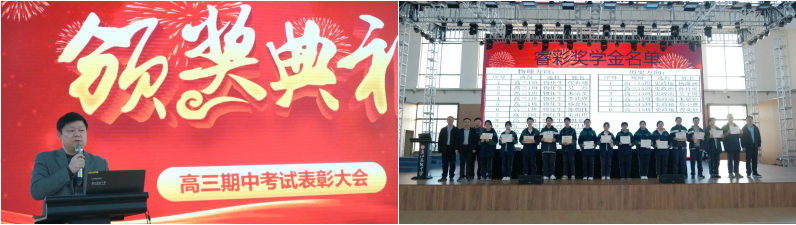 本次家长会最后一个环节是对本次期中考试表现优异的学子进行荣誉表彰。李文静宣读表彰同学名单,党委书记金永建为获奖学生颁奖。