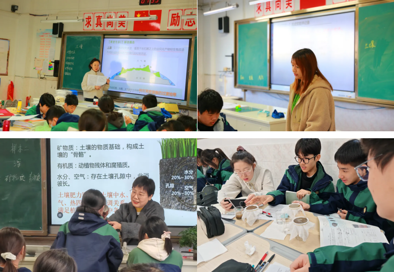 震泽中学施蓓蓓老师的课堂先梳理基础知识,了解基本概念,然后组织学生活动,根据问题,研究土壤样本,讨论探究土壤剖面、土壤组成、土壤质地,内容链接有序,由浅入深,将课堂交还给学生,注重学生的深度体验,学生积极思考,课堂氛围活跃,收获满满。