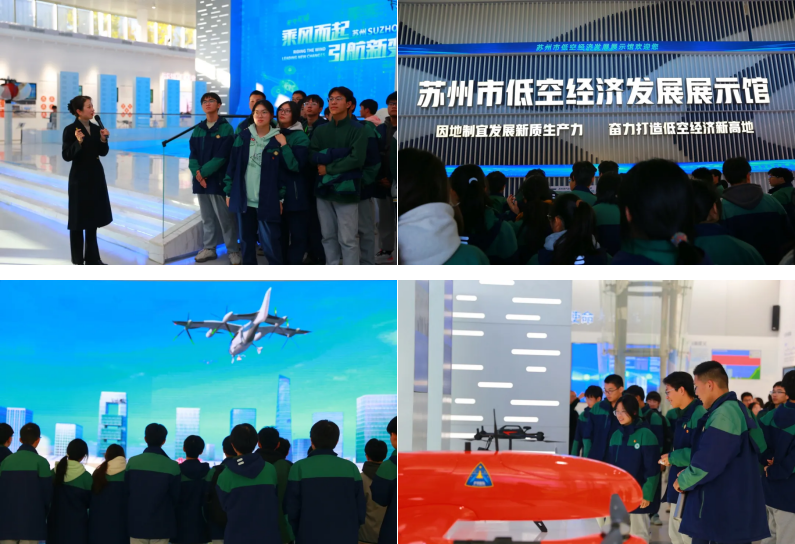 展示馆围绕“低空起航勇担使命”、“因地制宜汇聚力量”、“ 聚力成链共绘蓝图”、“开放引航竞逐低空”四大板块,介绍了苏州发展低空经济的产业基础、人才优势、配套设施等内容,以及未来重点探索领域。征鸿学子“零距离”感受新质生产力带来的无穷魅力。抬头仰望,一个与地面平行、互动的低空世界正在迅速建设,“低空+”的应用场景打开了创新经济新空间。