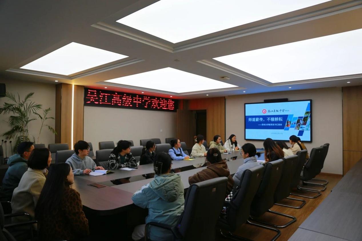 11月27日下午,吴江高级中学举办了以“师道薪传,不辍耕耘”为主题的实习会议。苏州大学实习生踊跃发言,表达了自己对学校以及指导老师的感谢,同时也分享了自己这两个月以来的成长与收获,现场氛围融洽,大家都充满不舍。