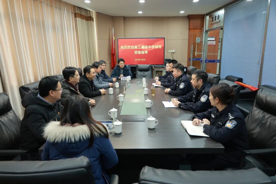 2025年1月10日是第五个“中国人民警察节”,在警察节来临前夕,吴江高级中学党委班子成员及部分中层代表来到开发区运西派出所开展党建共建活动。