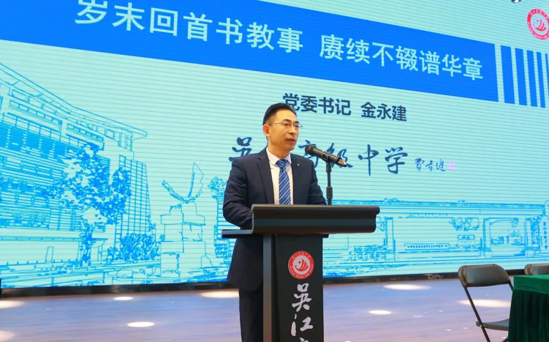 党委书记金永建以《岁末回首书教事,赓续不辍谱华章》为题,对2024年学校办学成绩作出总结,并激励全体教职工以饱满的热情和务实的态度迎接新的挑战。