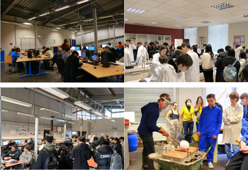 课程结束后,在老师的带领下参观了费迪南比松中学。作为一所理工科为主的学校,学校可学习的专业涉及很多方面,例如木工、电气、土木、机动设备制作……教室可以位于任何一个地方,有的在教学楼里,有的在任意一间车间仓库内。法国同学十分热情,见大家参观,都热情地挥手打招呼。