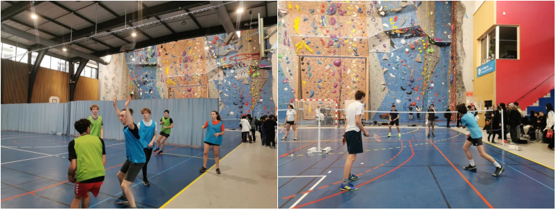 参观结束后,同学们来到了学校的体育馆,热情的法国学生邀请大家一起进行运动,运动项目包含足球、篮球、羽毛球、攀岩等。在体育馆中他们挥洒汗水,加深了两校学生的友谊。