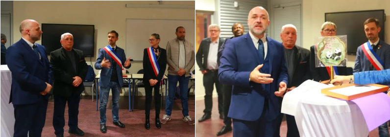 傍晚,瓦龙市市长POLAT Julien、副市长LE BOURDONNEC Aemelle亲切接待了赴法研学同学。市长给每一名同学赠送了包包纪念品,两校学生交换了象征中法文化和情谊的工艺品作为礼物。
