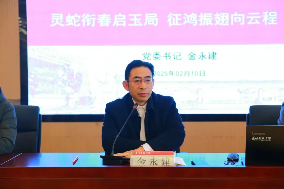 党委书记金永建以《灵蛇衔春启玉局 征鸿振翅向云程》为题作开学工作报告。