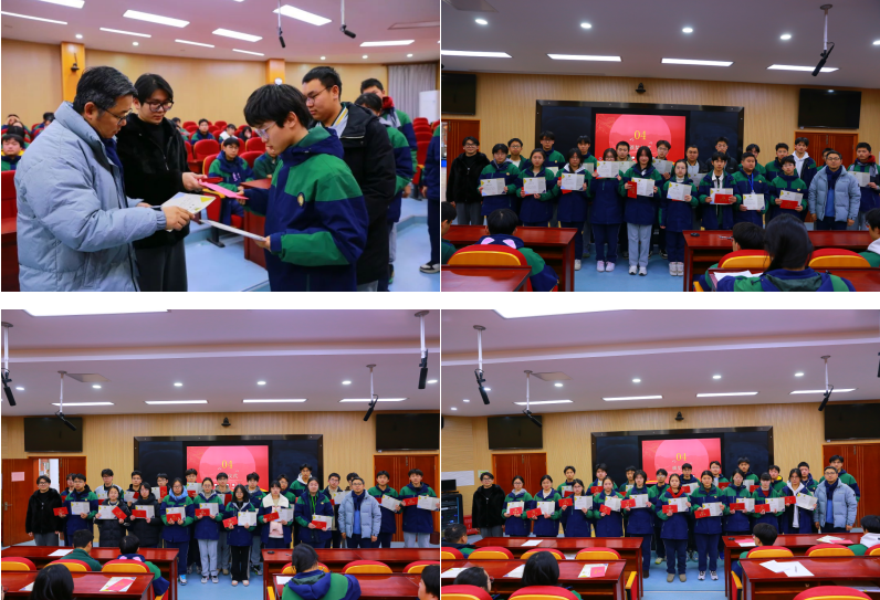 徐峰副校长颁发证书并与获奖同学合影留念。这些获奖学生是勤奋与努力的代表,他们在学业的道路上奋勇前行,用优异的成绩赢得了这份珍贵的荣誉,手中的奖状不仅是对过去努力的肯定,更是对未来的激励。