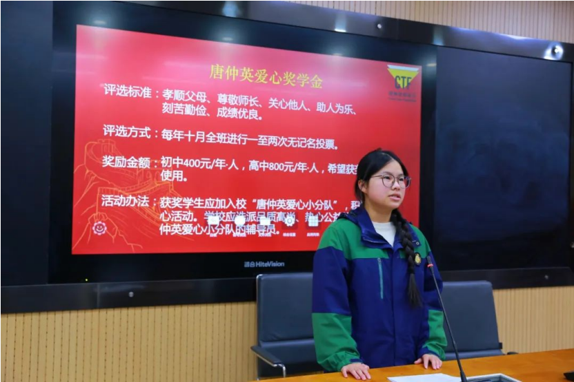 为了弘扬唐仲英基金会宗旨、激励同学们共同进步、懂得感恩、回报社会,2025年2月25日下午举行“唐仲英爱心奖学金”颁奖仪式,活动由学生会赵邵俊同学主持。