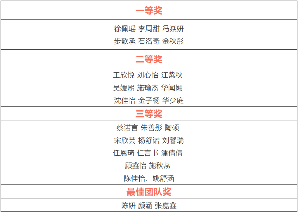 获奖名单