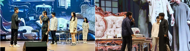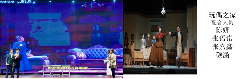 在《玩偶之家》与《祝福》的配音环节,学生们同样展现出了非凡的艺术创造力。在《玩偶之家》的配音中,学生们用声音赋予了娜拉、海尔茂等角色鲜活的生命力,生动演绎出娜拉从对丈夫的依赖到自我意识觉醒的全过程,将娜拉追求自由与独立人格的形象塑造得十分饱满。