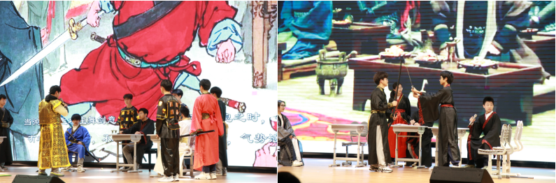 他们将子路的豪爽、冉有的谨慎、公西华的谦逊展现得活灵活现,体现了儒家所倡导的和谐、谦逊、积极入世的价值观,更营造出一种古典的智慧美。学生们精彩的表演让观众感受到古人对理想人格与社会秩序的追求,也启发着当代学子对自身人生志向的思考。