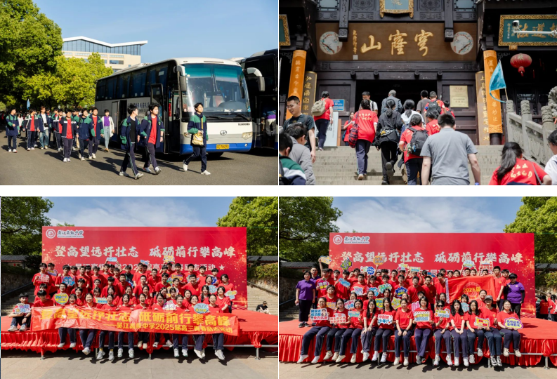 穹窿山拔地而起的雄伟身姿宛如青春路上需要跨越的重重难关,山间变幻的四时景致象征着青春旅程的丰富多彩与跌宕起伏,其深厚的历史底蕴为学生们提供汲取励志力量的无尽源泉,激励他们在青春的赛道上奋勇拼搏。暖日和风,翠绿环绕,征鸿高三学子来穹窿。