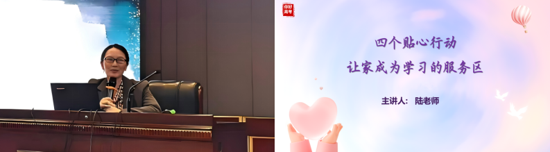 学校特邀请苏州市田家炳实验高级中学专职心理教师陆伊老师,于5月10日下午,在征鸿楼四楼,为高三年级的全体家长,开设“四个贴心行动,让家成为学习的服务区”的心理讲座。
