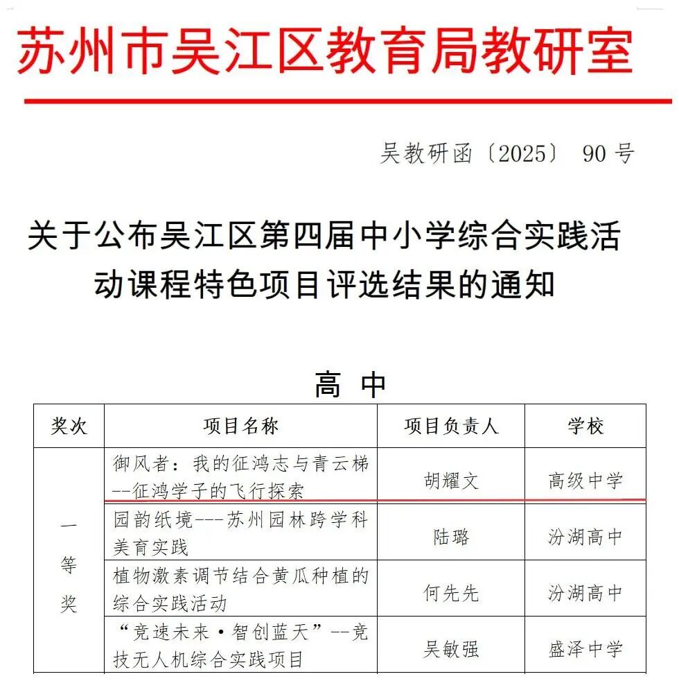 喜报|我校在吴江区第四届中小学综合实践活动课程特色项目评选中荣获一等奖