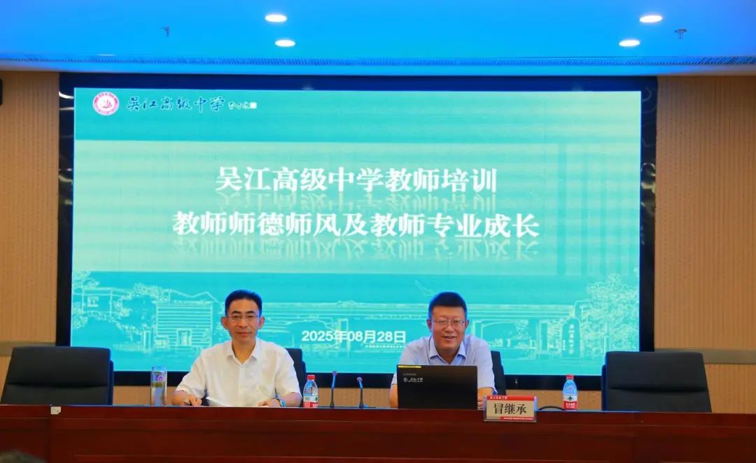 为助力征鸿师者践行教育家精神,成长为有理想信念、有道德情操、有扎实学识、有仁爱之心的新时代“四有”好老师,提升我校苏州市四有好教师重点打造团队——“征鸿•师者”好教师团队培育的效度,2025年8月28日上午,吴江高级中学特邀苏州市教师发展学院副院长冒继承开设专题讲座——践行教育家精神 做新时代“四有”好老师。