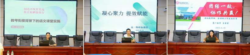高三语文备课组长陈芳老师以“教考衔接背景下的语文课堂实施”为题分享高三语文备课组建设的思路。高三语文组将以“精准教学”为主线,重点推进四项工作:深化集体备课机制,统一进度与重难点;设计分层分类作业体系,实现因材施教;优化学生活动设计,提升语文核心素养;建立质量检测闭环,强化反馈与改进。